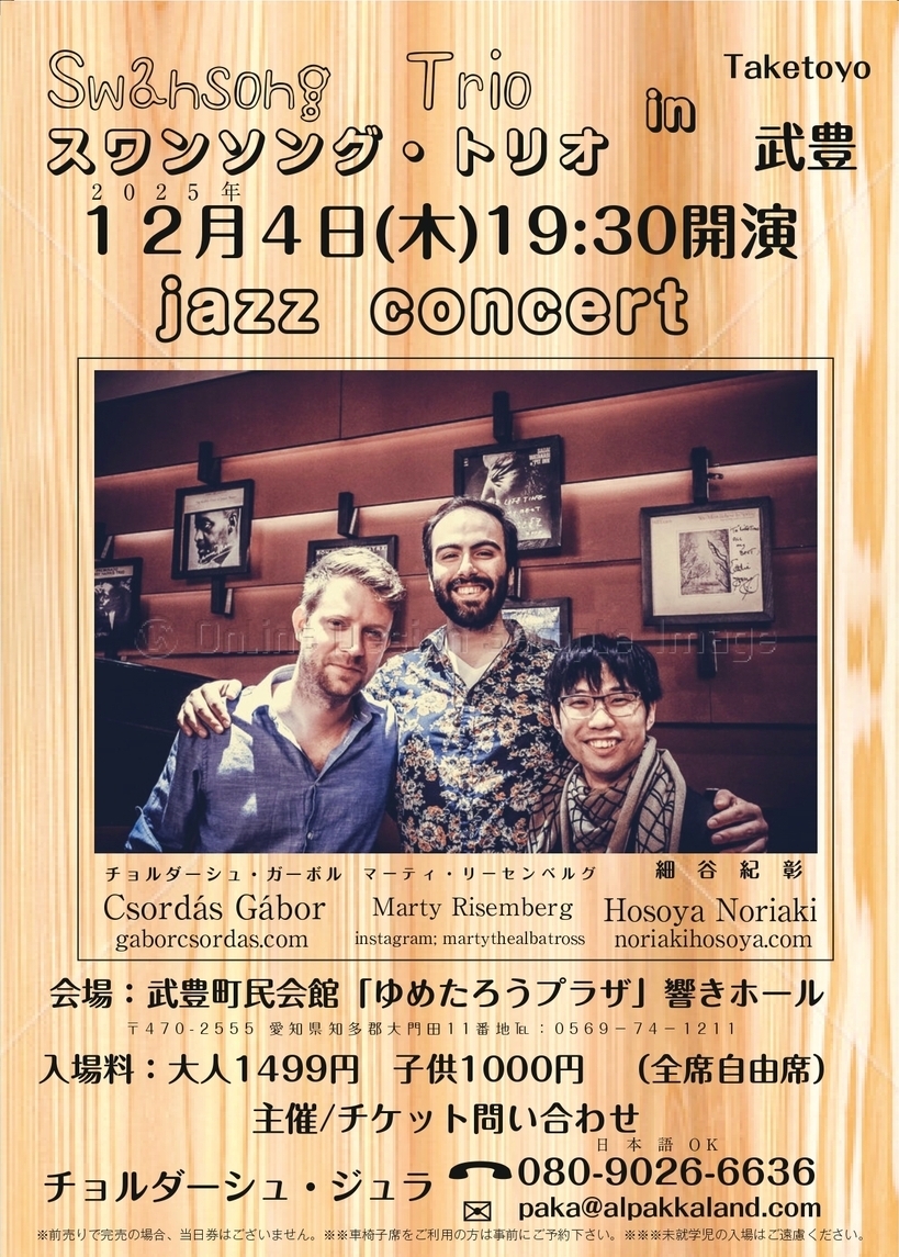 October 28 Aichi-Hungary Friendship Association's annual meeting, Paka plays jazz with Mitoma Tamio sensei, 3 pieces with hungarian theme